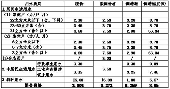 两套方案的自来水综合价格每立方米均增长2毛6分9,增长幅度均为8.95%。