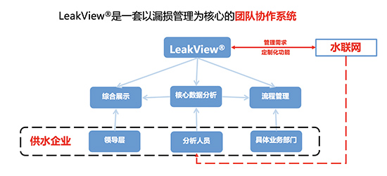 谈完智慧水务的理解和存在的问题后,王志军重点介绍公司研发的LeakView®系统,他表示:LeakView®*套以漏损管理为核心的团队协作系统,在整个漏损和产销差管理过程中,LeakView®系统*要目标不是直接面对领导层,把数据拿出来做面板,而是运用场地技术,配合分析人员和具体的业务人员,为业主提供定制化的需求改善他们的业务流,达到以漏损管理为核心团队协作系统。