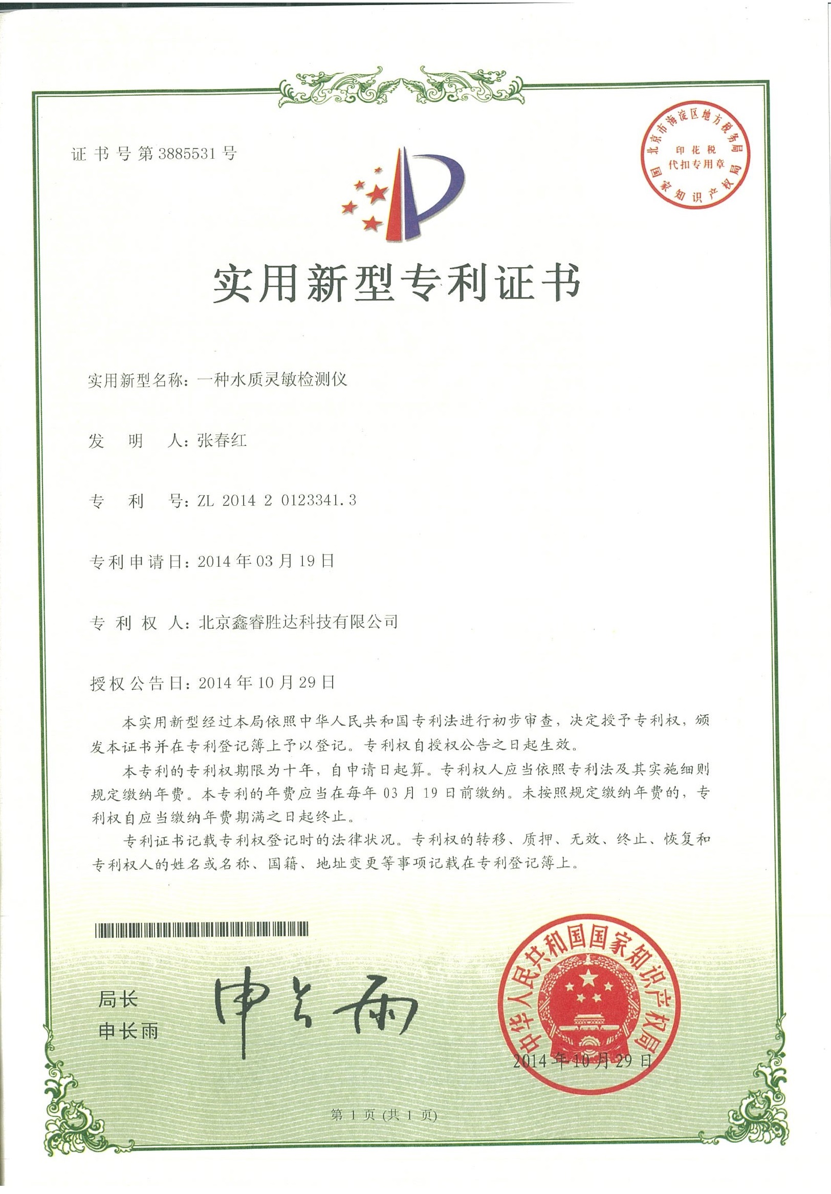 实用新型—— 一种水质灵敏检测仪