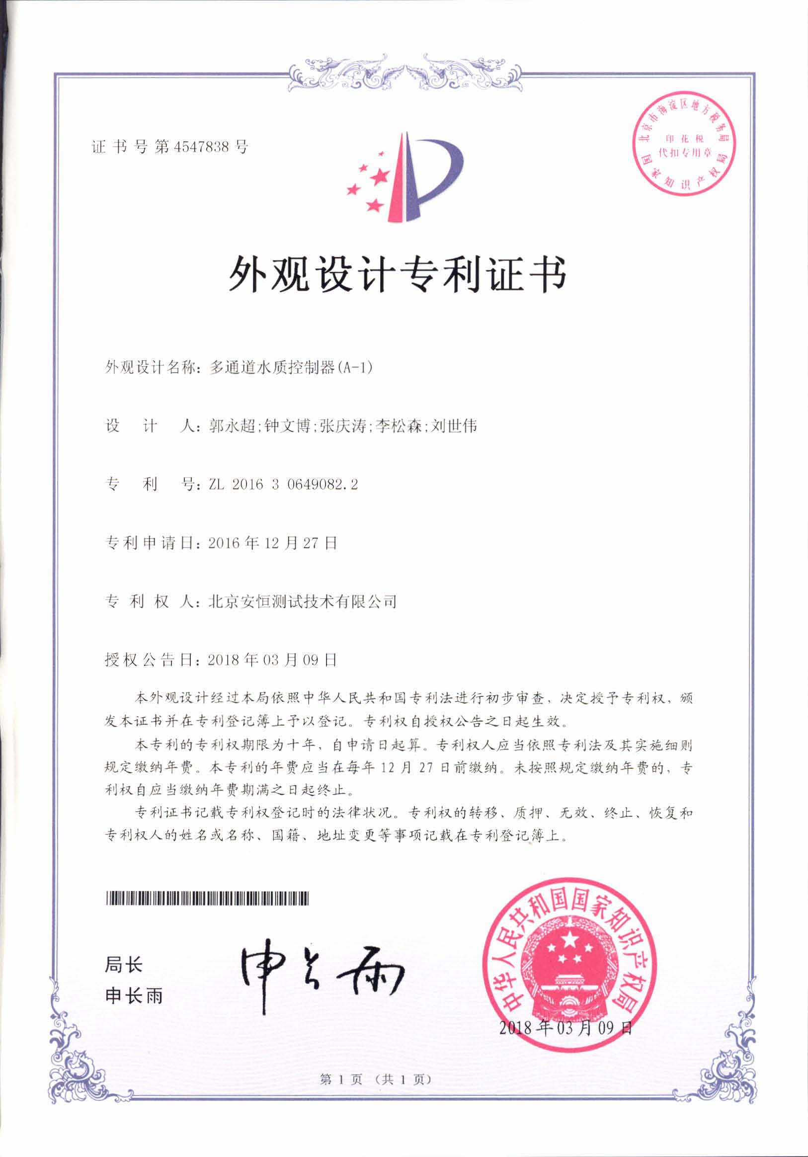 外观设计——多通道水质控制器(A-1)